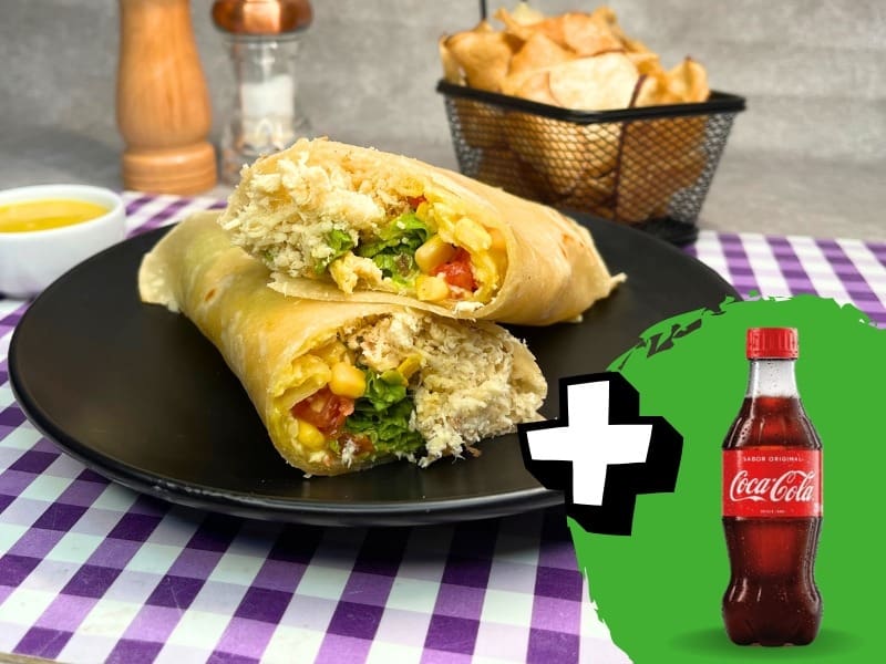 Escolha seu Wrap + Chips Batata Doce + Coca-Cola 250ml. Bem servido como Almoço , Lanche ou Jantar.