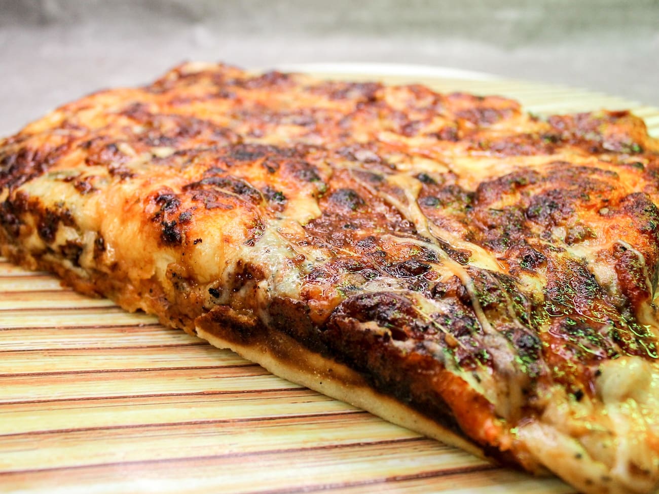 Pizza Quadrada e bem assada! Borda Crispy ao estilo pizza Detroit Americana. Massa Pan. Server até 3 pessoas.