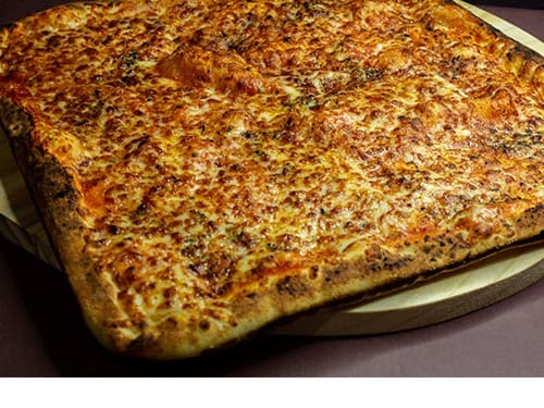 Pizza Quadrada Grande (Bem maior que Pizzas Tradicionais Redondas) de Massa Americana Maturada, Molho de tomate Caseiro, Mussarela, orégano. Enjoy! Serve de 3 a 4 pessoas. 16 Pedaços. Feita com ingredientes selecionados e da maior qualidade!